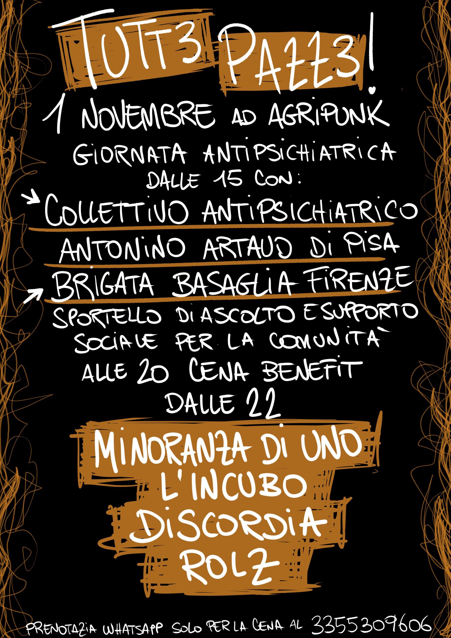 Sabato 1 novembre TUTT3 PAZZ3! giornata antipsichiatrica c/o Agripunk