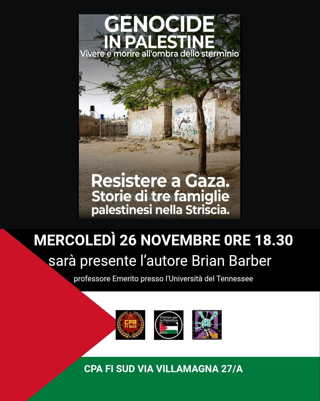 FIRENZE: 26/11 presentazione del libro RESISTERE A GAZA c/o CPA Fi-sud